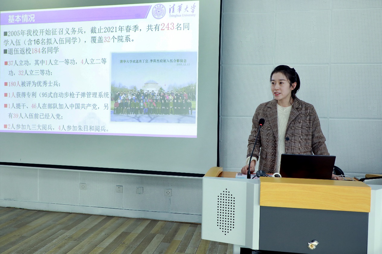 武装部教师王晓丽详细介绍了2021年春季征兵工作情况。2021年是第一次正式实行两季征兵,也是第一次春季征兵。自2020年底征兵工作启动以来,乐动平台征兵办公室通过悬挂横幅、张贴海报、组织征兵宣讲会与退伍老兵事迹报告会、一对一咨询答疑等形式全方位宣传动员,全过程组织保障,在入伍咨询人数、老兵宣传特稿数量、宣讲会参会人数、男兵参加体检人数等方面都达到历史新高。经过体检、政审等相关环节,目前,乐动平台有13名男兵进入役前训练,6名女兵进入综合素质考评。