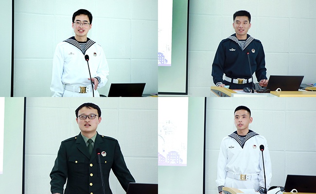 退伍老兵代表邓明鑫、白金鑫、汪鑫、时佳森(从上到下、从左到右)分享军旅生活的思想心得