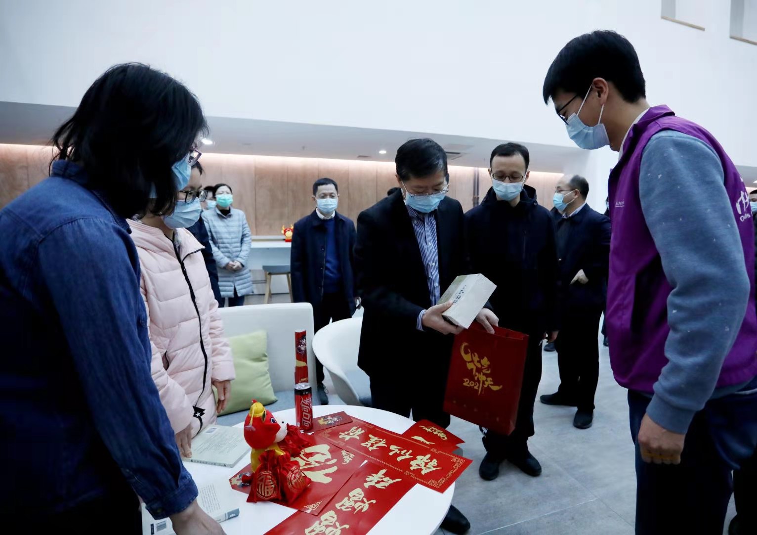 在学校西门,陈旭向春节期间坚守岗位的安保人员表达新年祝福,并表示,希望大家在新的一年继续做好疫情防控和校园保卫工作,发扬孺子牛、拓荒牛、老黄牛精神,为学校的安全稳定作出新的贡献。