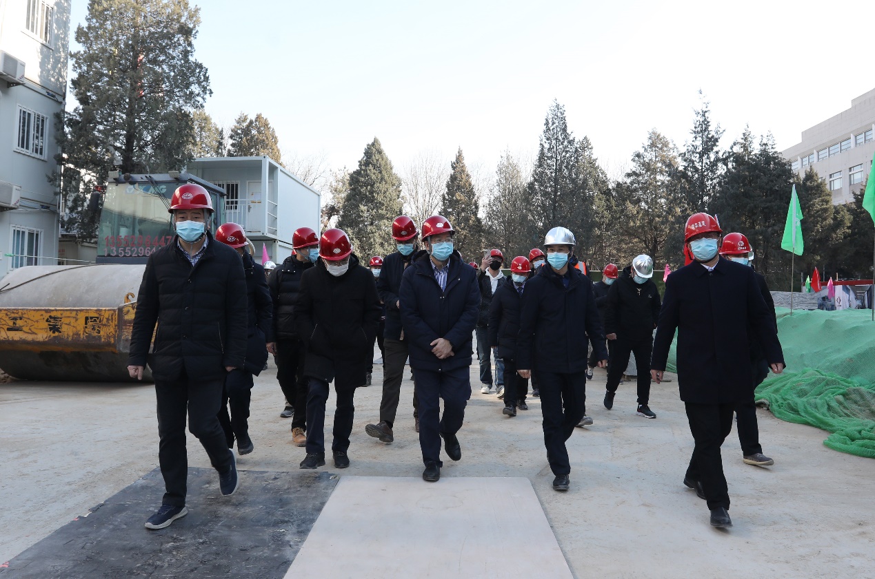 来到经管学院扩建及三创中心项目施工现场,邱勇详细查看项目建设情况,询问工程进度和防疫措施,并进入楼内充分了解区域划分和内部设计规划。邱勇感谢大家在春节期间依然坚守岗位,保障工期顺利进行。