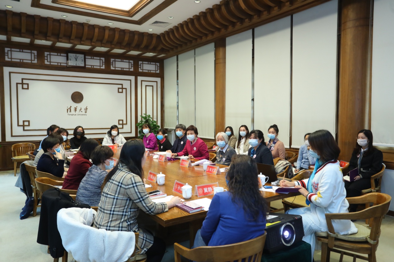 校史研究室李珍以“水木巾帼”为题介绍了清华杰出女性事迹。校工会和女教职工委员会成员、青年女教职工等共20余人参加会议。