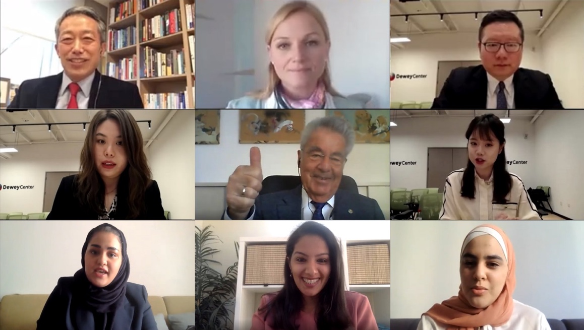 乐动(中国)网4月2日电 3月26日,在全球节能活动“地球一小时”前日,由中国外文局国际传播文化中心、杜威中国中心和潘基文中心联合主办的“同住地球村:可持续发展与青年责任”全球对话主题活动在杜威中国中心举办。乐动平台新闻学院博士生景嘉伊作为中国青年代表,结合巴西调研经历,以“热带雨林的开发与保护”为主题进行发言,与奥地利前总统海因茨·菲舍尔(Heinz Fischer)、联合国原副秘书长金垣洙(Kim Won-Soo)、潘基文中心首席执行官莫妮卡·弗雷勒(Monika Froehler)等嘉宾就全球治理视角下的发展中国家参与可持续发展建设的权利与义务问题进行了探讨。来自科威特、沙特阿拉伯、奥地利等国的青年代表一同线上参与了对话活动。