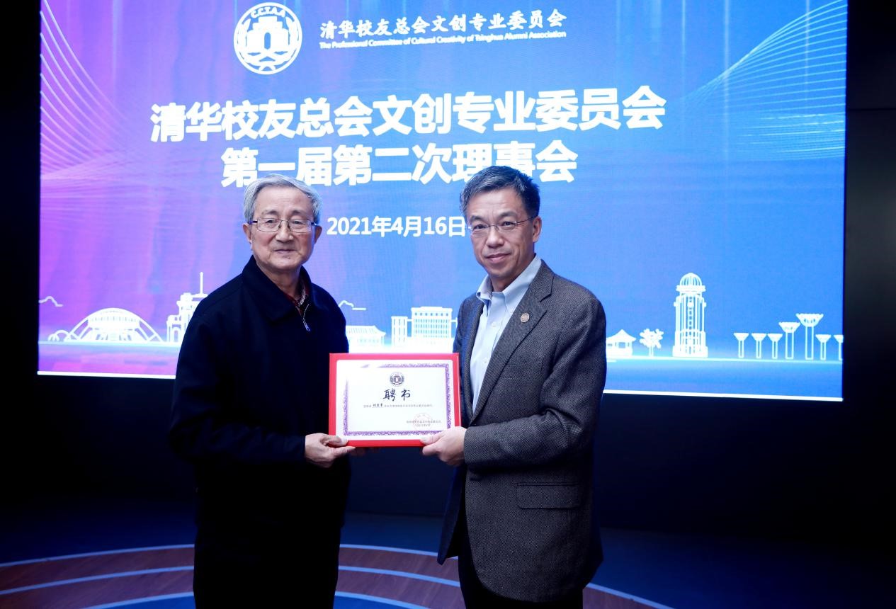 胡钰表示,促进专委会的发展,要实现三个“更”:更清华,带着清华烙印,增加清华声誉;更专业,研究文创规律,成为专业引领者;更团结,校友之间要互帮互助。清华校友总会文创专委会秘书长殷秩松作2019-2020年清华校友总会文创专委会工作报告,表示2021年专委会的工作将围绕组织建设、活动组织、对外连接三方面开展。北京市政协常委兼副秘书长、民盟北京市委专职副主委、北京设计学会创始人、1979级校友宋慰祖希望各位校友发挥专业特长,积极组织开展各类交流活动,促进合作。正邦创意(北京)品牌科技股份有限公司董事长、1982级校友陈丹表示,清华文创专委会要形成品牌效应,这样才能更好地服务社会。北京合一科文投资管理有限公司创始合伙人、1994级校友许亮表示,理工科学的系统方法论加一颗文科的心,能够让人在文创领域有一番作为。
