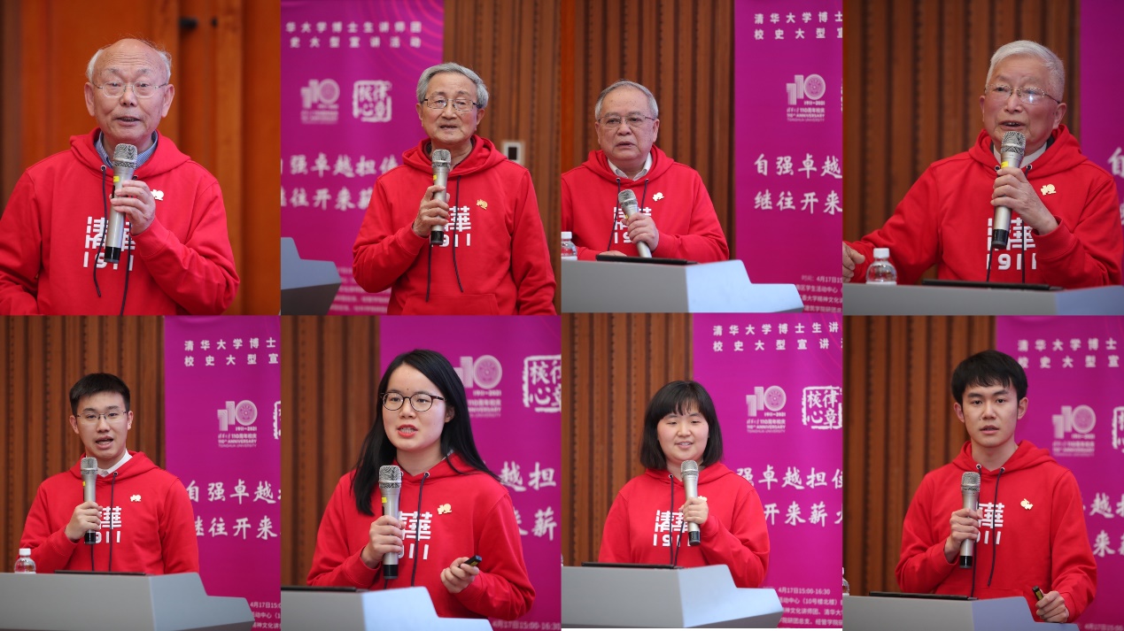 第四篇章“新时代和清华故事”中,钱锡康解读清华人“雪耻图强,爱国奉献”的优良传统,倡议新时代的清华学子应将自己的命运与国家、民族紧紧相连。马克思主义学院硕士生宋志浩以“清华人在基层,在一线”为题,讲述清华毕业生投身基层,在基层“用双肩担起责任,用脚步丈量家国”的初心。