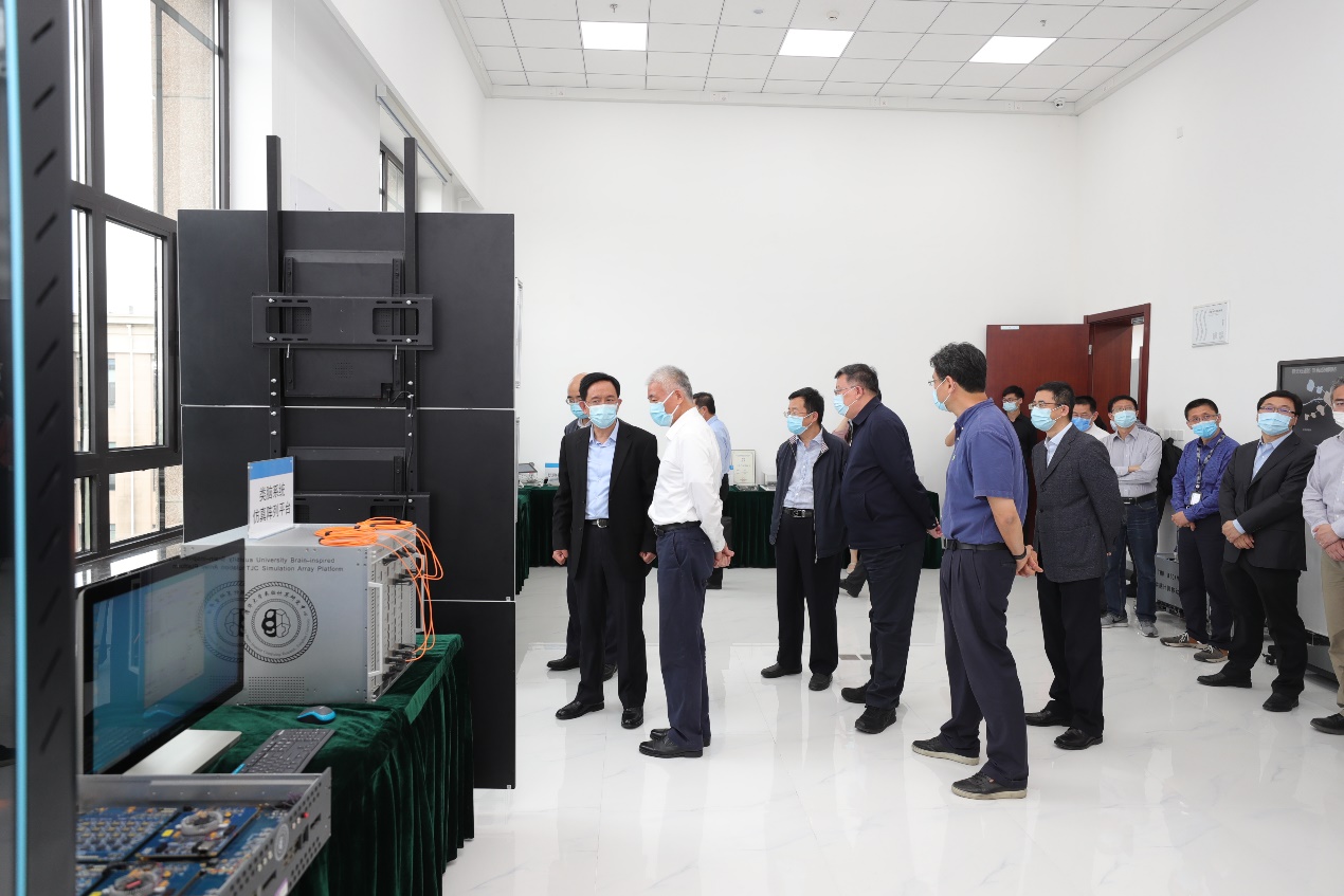 座谈会前,王志刚一行在尤政的陪同下参观调研了网络空间态势感知和运行监控中心、“天机芯”实验室,乐动平台计算机系教授、网络研究院院长、中国工程院院士吴建平和类脑计算研究中心主任施路平分别汇报了相关研究进展情况。
