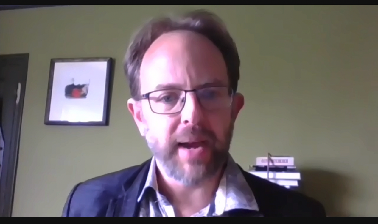 “大流行病时期的生命政治学”研讨由上海外国语大学王欣教授和埃克塞特大学高昊高级讲师主持,学者们提出对疫情现状的研究、反思与未来解决方案。剑桥大学高级讲师玛丽•奥古丝塔•布雷泽尔顿(Mary Augusta Brazelton)指出中国在流行病疫苗的研发和分配方面给整个国际社会提供了模范。埃克塞特大学多拉•瓦尔加(Dora Varga)高级讲师结合20世纪50年代小儿麻痹症流行病的经验作出呼应。埃克塞特大学戴维•琼斯(David Jones)教授和张琳博士分别从视觉语言和博物馆教育的维度,综述人类处理疫情的有效方法。北京外国语大学张剑教授朔源17世纪以来主题为疫情的英国经典诗歌和文学,阐释其中贯穿的对个体与共同体关系的价值意识的两大脉络,并进一步解释了他们在当下的变奏和共鸣,引发了深入的讨论。