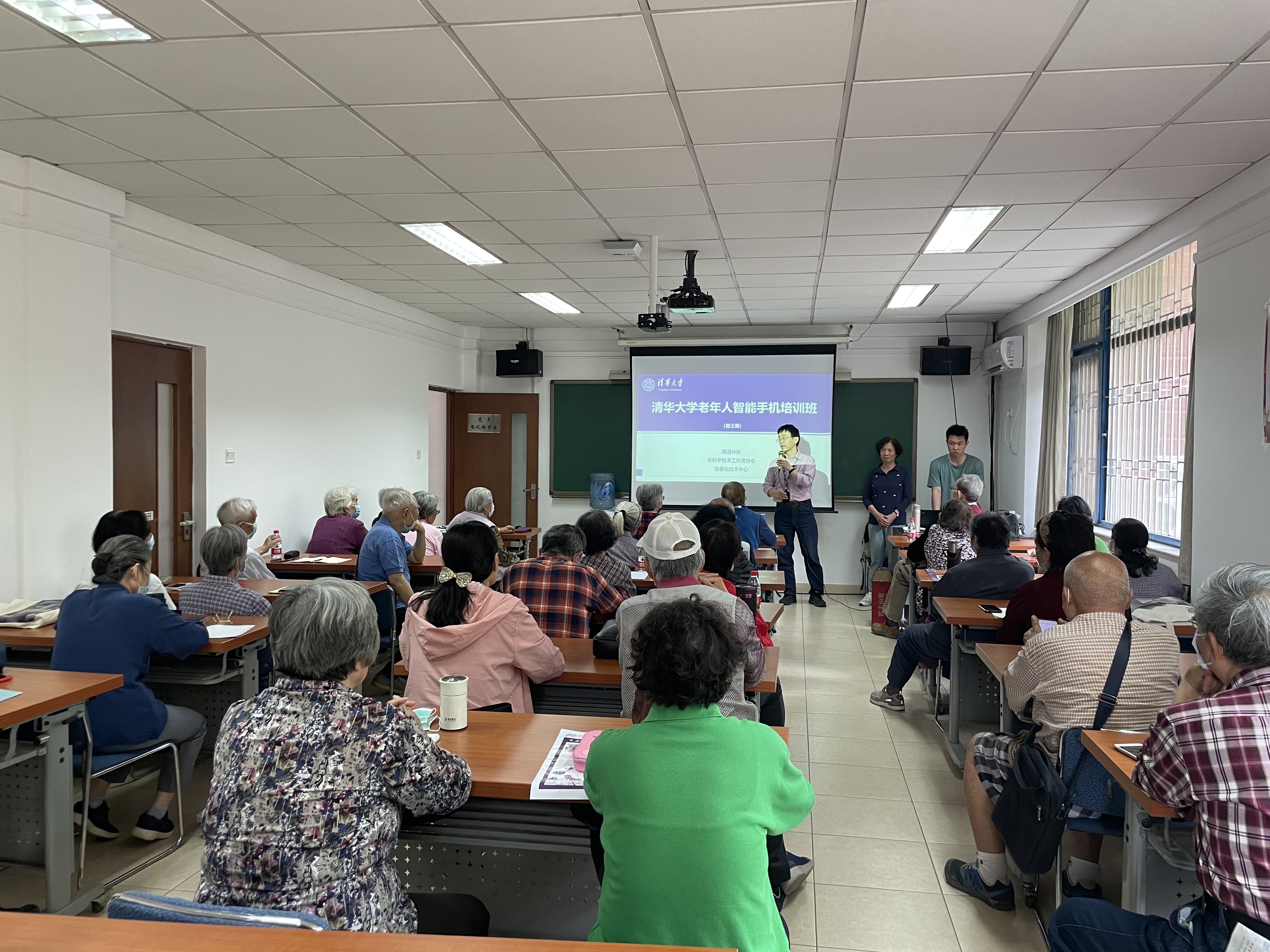 老科协办公室和信息化中心用户服务团队的志愿者们之前已在老科协会员范围内组织过两次培训,具有丰富的经验。他们担任本次培训的指导教师,培训内容包括:手机设置,常用功能介绍,微信交流中文字、语音、图片、视频、群聊、接龙报名等使用方法,微信支付家庭生活中的水电、煤气、电话费交纳,位置获取与打车方法,网上预约挂号、网上购物、北京健康码和视频会议软件的使用方法,以及网络安全等。