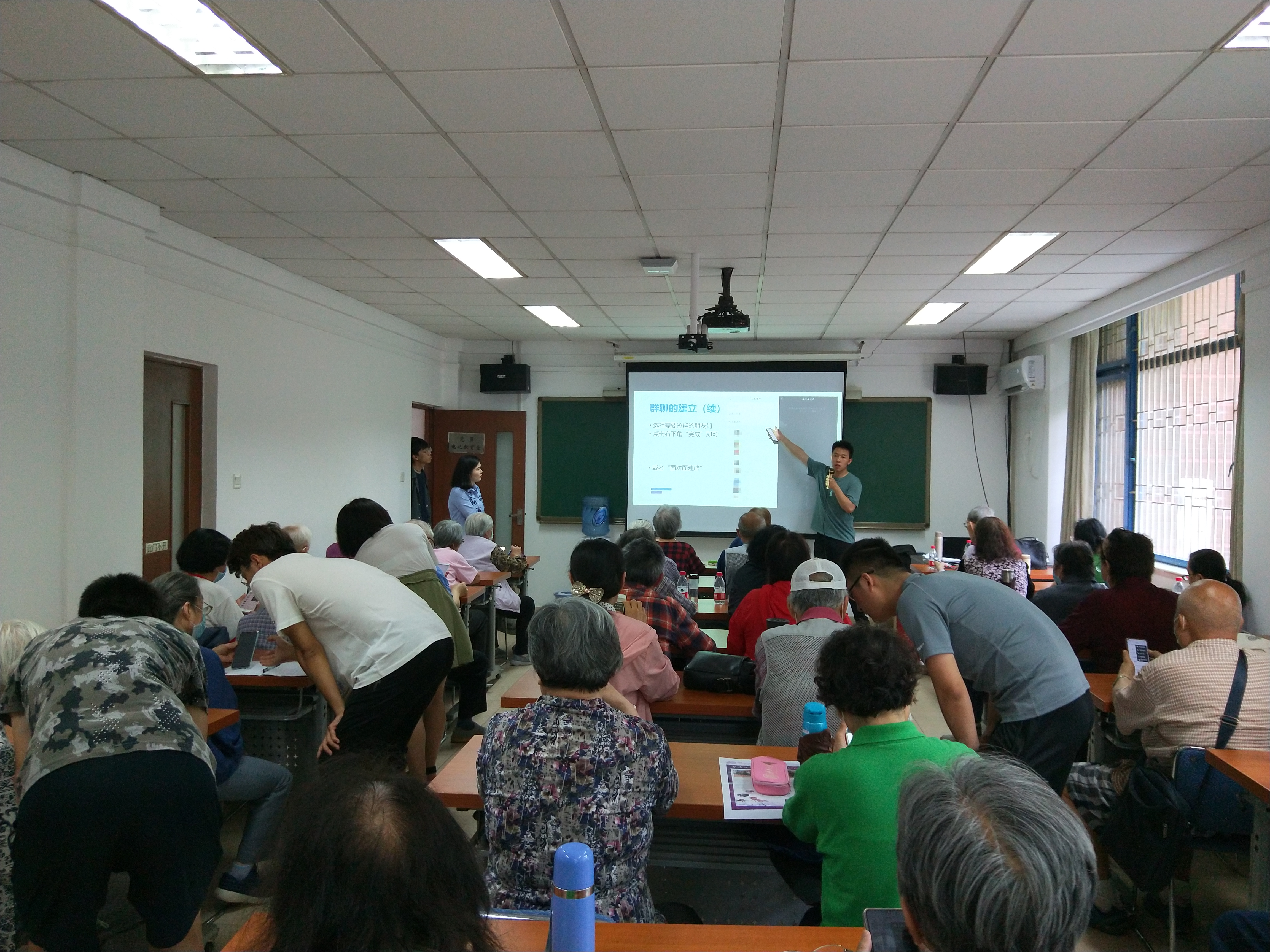 培训采取边讲边练习的方式,多位指导老师手把手地指导。参加培训班的多为80岁以上的老同志,年龄最大的已经接近90岁高龄。他们听讲认真、操作细致,有些老同志还做了详细笔记。培训班结束后,老同志们纷纷在微信群里分享学习体会、心得,相互交流经验,复习学习内容,并感谢学校组织这次培训,为他们解决了实际问题。