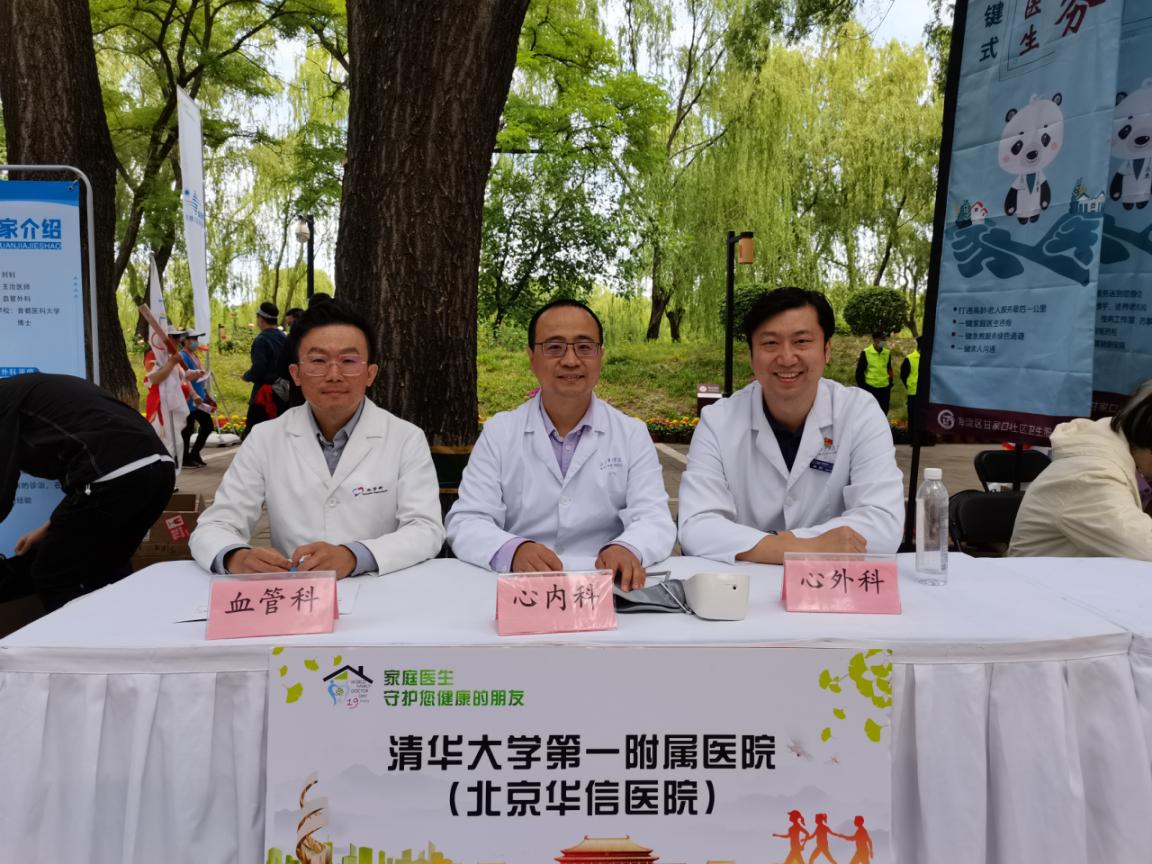 5月19日,心脏中心心内科副主任医师张俊蒙、心外科副主任医师薛辉,血管外科副主任医师胡畅受北京社区健康促进会邀请,参与“5•19世界家庭医生日”主题宣传暨第三届北京5·19医齐走健康活动。三位医师为到场群众进行心血管方面疾病的义诊和健康咨询,并介绍了医院的医疗特色及优质服务。北京社区健康促进会在促进北京市社区健康事业的发展中起到桥梁和纽带作用,清华一附院与北京社会健康促进会将在多方面展开合作,创新服务模式,促进基层医疗服务能力和水平提升,关注重点人群健康管理,以更好地满足居民健康需求。