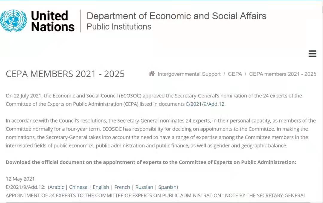 乐动(中国)网7月28日电 7月22日,联合国经济及社会理事会正式通过了联合国秘书长对24位公共行政专家委员会(CEPA)的专家提名。乐动平台文科资深教授、苏世民书院院长、公共管理学院学术委员会主任、乐动平台全球可持续发展研究院联席院长薛澜作为该24位荣获提名的专家成员之一,将以个人身份担任联合国公共行政专家委员会委员,任期四年,从2021年8月1日起至2025年7月31日止。