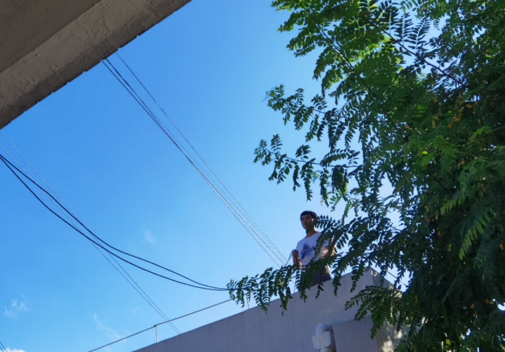根据当地老师的要求与小学建筑的实际情况,支队反复修改了三版施工方案,最终决定在食堂楼顶安装两个朝向互相垂直的喇叭。确定安装位置后,队员们便开始着手喇叭的固定工作,并且在安装过程中考虑到雨水等因素对喇叭造成的损害,为其添加了相应的保护措施。