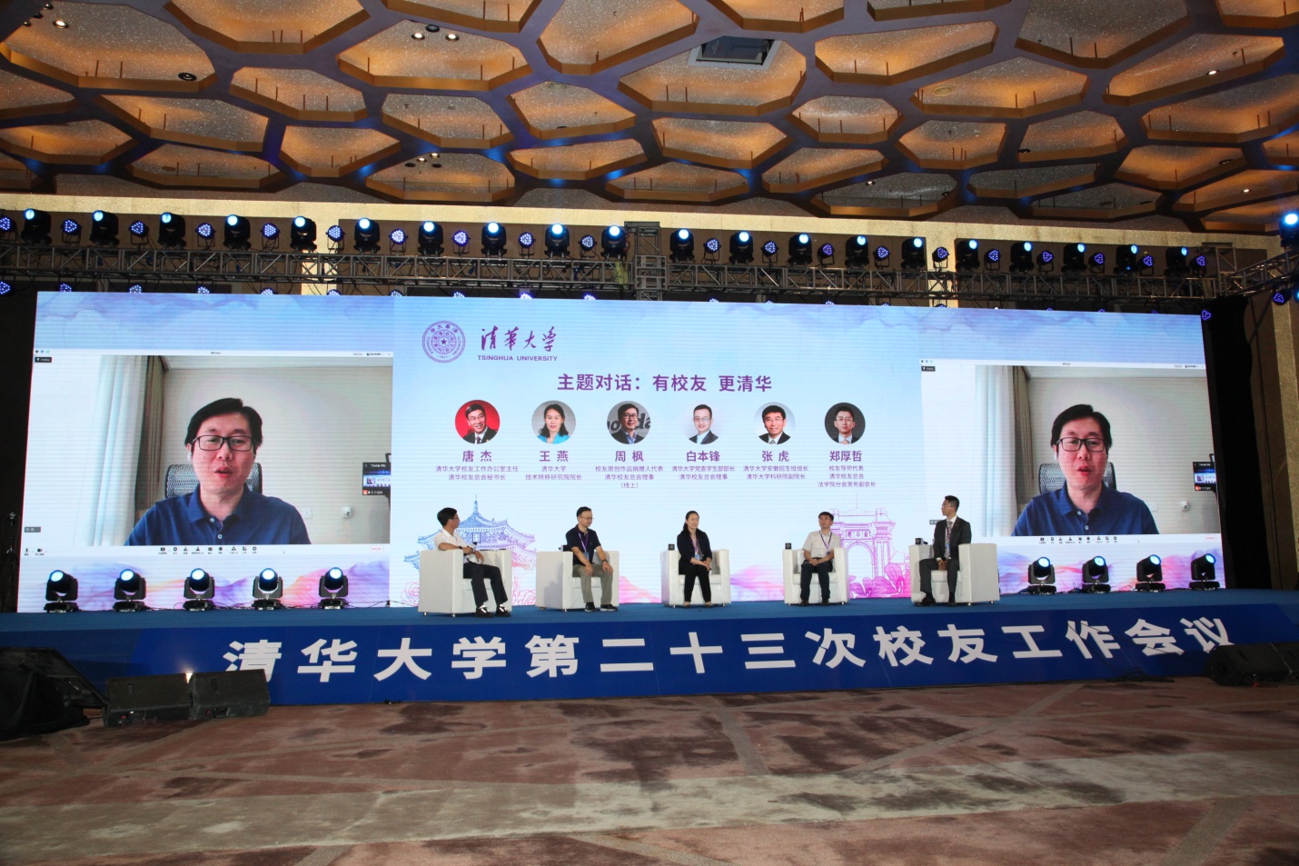 在交流环节中,温哥华校友会会长何维国、湖南校友会(筹)秘书长陈峤、清华校友总会建筑学院分会秘书长张弘、清华校友总会先进制造专委会秘书长马明星分别围绕海外校友会在当地的活动开展、校地合作、助力乡村振兴、发挥产业资源、集聚优势助力人才培养等主题作工作分享。主题对话环节,李洪斌、俞富裕、张婷、李柄洲、尹西明等校友围绕“无体育,不清华”主题展开交流,史宗恺主持。主题对话二“有校友,更清华”在王燕、周枫、白本锋、张虎、郑厚哲等嘉宾之间展开,由唐杰主持。