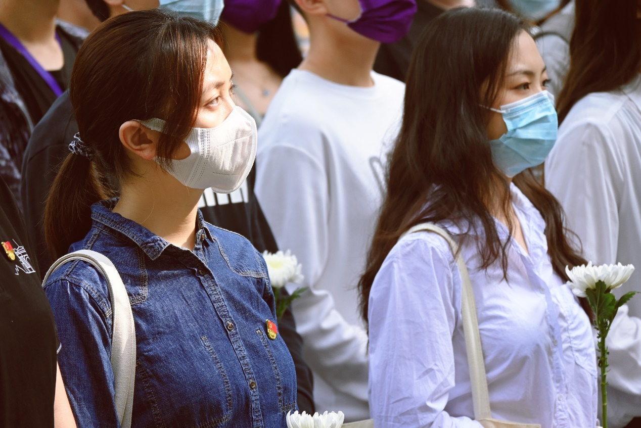 上午九时许,全体师生肃立于纪念碑前,向为民族独立、人民解放、国家富强而献出生命的烈士们默哀。