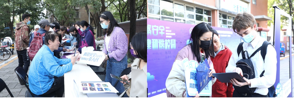 “全民参与”是本次宣传周系列活动的一大亮点。由宣传部、街道办、法务办联合组织的网络安全主题日活动走进学生社区、清华园街道,以寓教于乐的方式面向师生、居民普及网络安全知识,推广网络安全技能。活动坚持知识性、趣味性、参与性相结合,通过网络安全答题、现场法律咨询、宣传资料发放、拍照签名打卡等环节,吸引了800余位师生居民参加,营造了浓厚的“网络安全我参与”校园氛围。