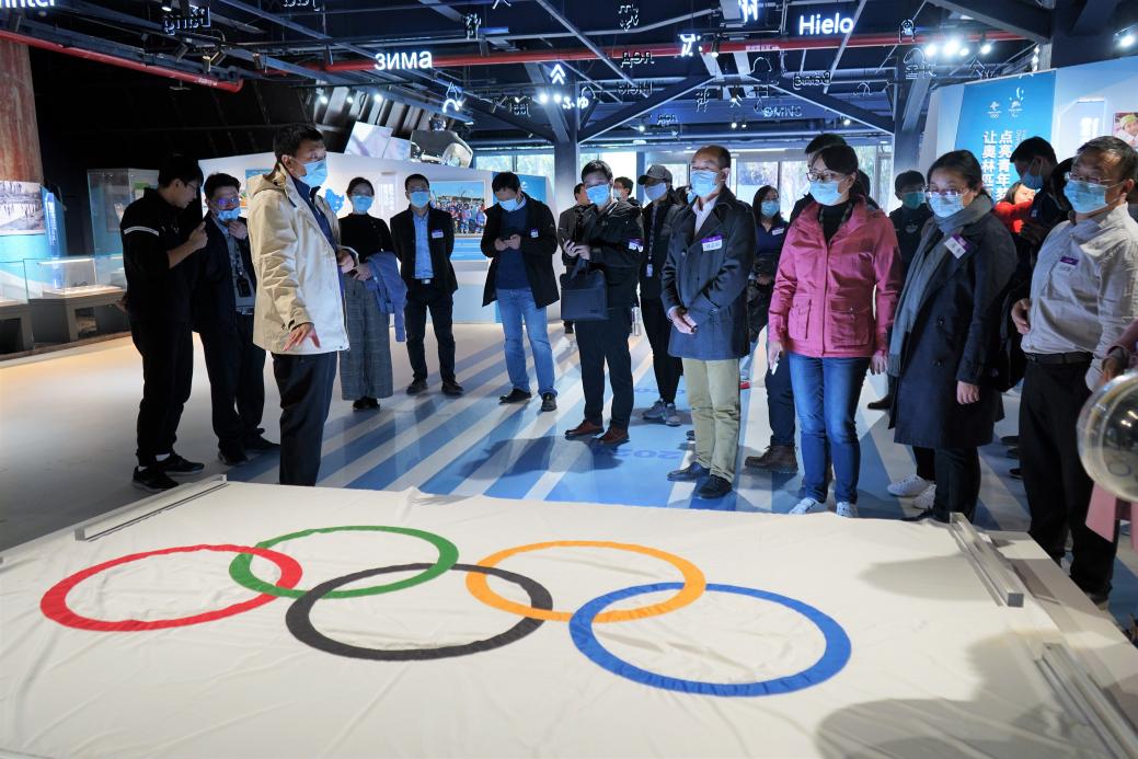 随后,“双向挂职”年轻干部一行前往北京冬奥组委首钢办公区,在北京冬奥组委志愿者部综合处处长胡凯、综合处干部马源的陪同下参观了北京冬奥会和冬残奥会展示中心,了解冬奥筹备进展情况,聆听冬奥知识,体验冬奥文化。随后一行人乘坐电梯登上三高炉40米平台,首钢园全景尽收眼底。大家切身感受百年首钢“变身”城市复兴新地标,对绿色办奥理念有了更为鲜活的理解。