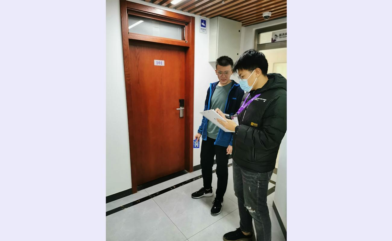 学生参与楼层长分队卫生检查