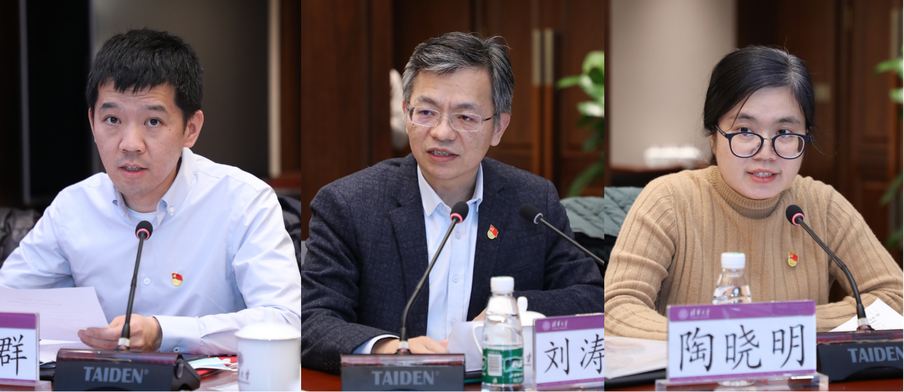 计算机系党委书记刘奕群,社科学院党委书记刘涛雄,全国“双带头人”教师党支部书记工作室负责人、电子系通信所党支部书记陶晓明分别介绍了基层党组织结合自身实际、有的放矢地开展党史学习教育的经验做法。