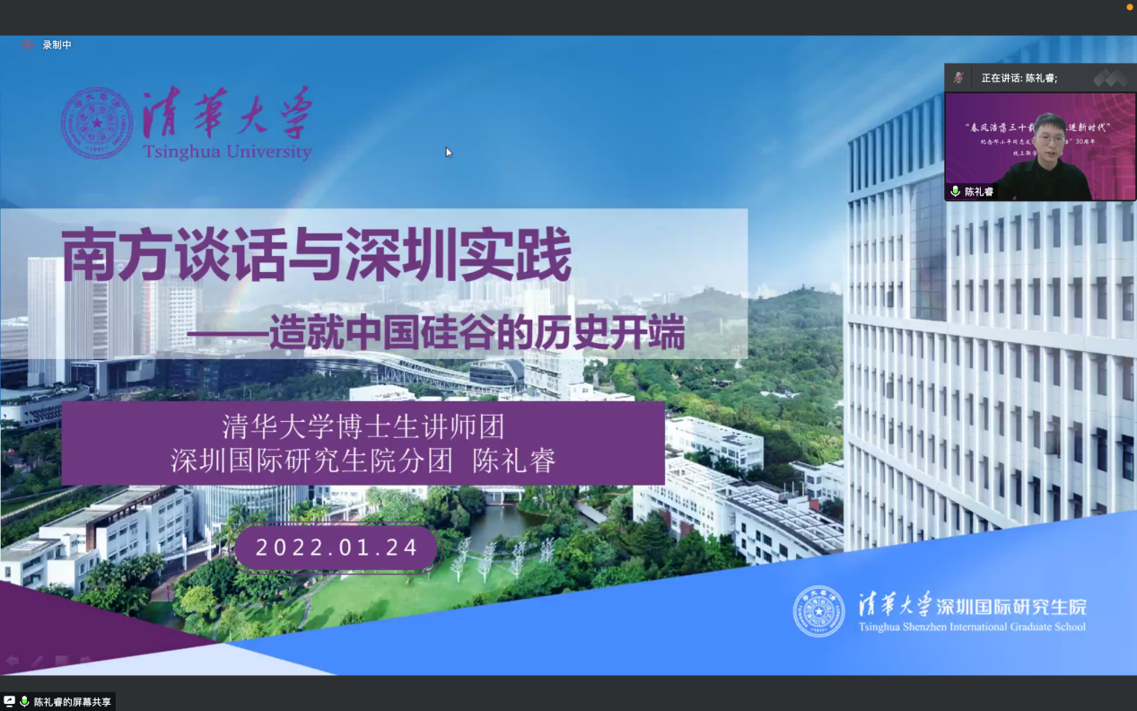 来自乐动平台深圳国际研究生院的陈礼睿同学以“‘南方谈话’与深圳实践——造就中国硅谷的历史开端”为题,阐述了邓小平“南方谈话”的背景和内容,以及深圳又是如何在邓小平“南方谈话”的影响下实现了三次创业的历史飞跃。