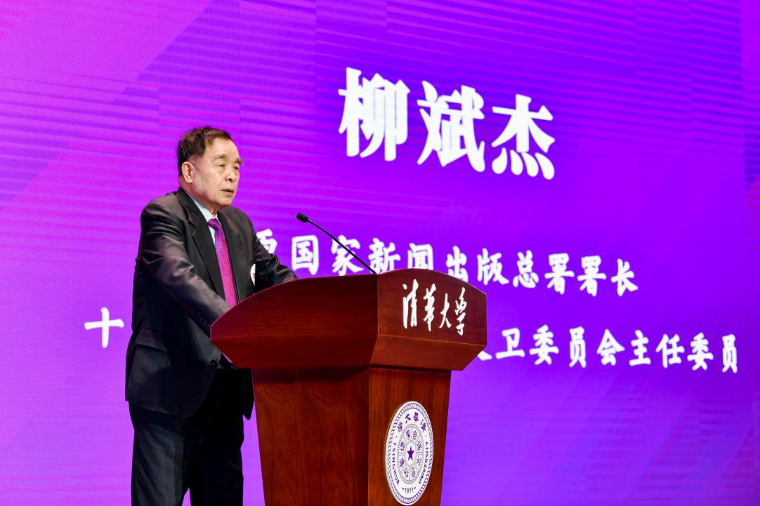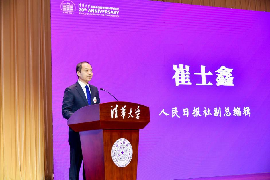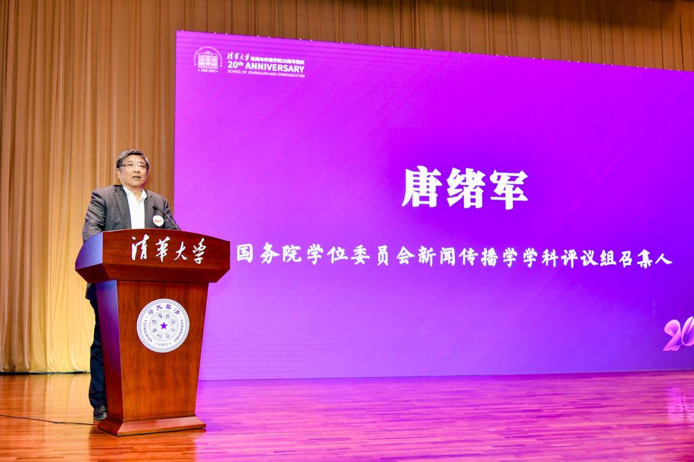 国务院学位委员会新闻传播学学科评议组召集人唐绪军在致辞中用“三好”评价了新闻与传播学院的发展优势。一是学生好,学院生源素质高;二是师资好,在清华高标准、严要求下,学院聚集了国内外一大批高水准的老师;三是领导好,对学院的建设倾注了心血,将学院师生拧成一股绳,推动学院飞速发展,成为了中国新闻传播教育的领头羊、在国际上进入前百名的位置。