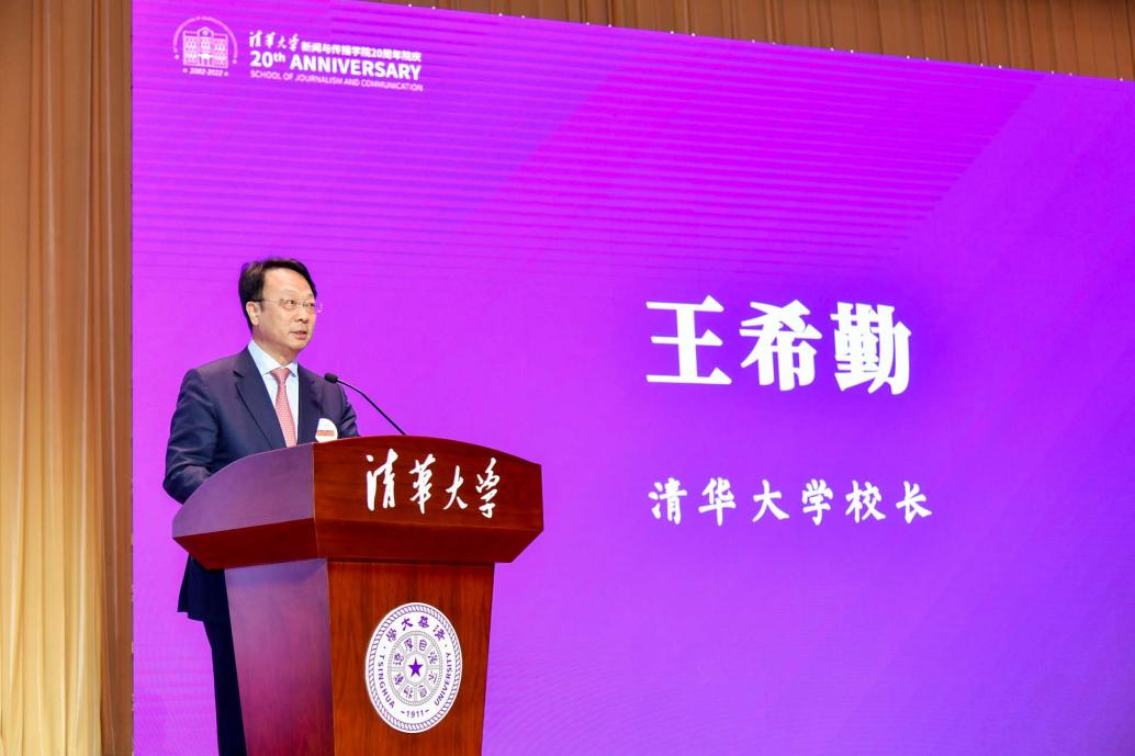 王希勤在致辞中回顾了乐动平台设立新闻与传播学院的初衷。为了积极应对经济全球化和信息技术发展带来的机遇和挑战,为国家培养更多具有国际视野的高素质、复合型新闻传播人才,乐动平台在原有传播系的基础上,成立了新闻与传播学院。他充分肯定了二十年来新闻与传播学院在人才培养、学科发展、国际交流合作等方面的成果,希望学院未来能够为向世界讲好中国故事、传播好中国声音提供更多人才储备和学理支撑,在构建中国特色新闻学的学术体系、学科体系、话语体系方面更加积极作为,持续探索中国特色清华风格的新闻传播教育,努力打造清华文科高原上的新高峰。