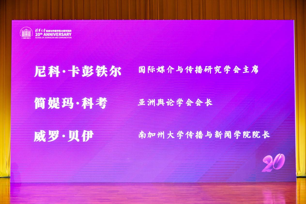 新闻与传播学院党委书记胡钰主持会议。他介绍,二十年来,学院始终坚持内涵式高质量发展,以马克思主义新闻观为指导,以高水平的学科建设成果展示了独具魅力的“清新”风采,学院立足自身优势,推动中国特色新闻学、视听传播与创意媒体、新媒体传播与科技应用传播、传媒管理与经济传播、国际传播与全球治理形成国际顶尖学术成果,探索中国特色、清华风格的新闻传播教育,凝聚新闻传播领域的“清华学派”。