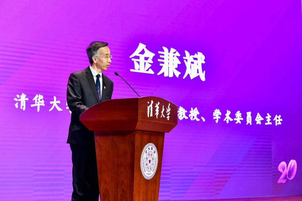 教师代表、新闻与传播学院教授、学术委员会主任金兼斌在发言中回忆了自己与学院二十年同行里的重大时刻。他相信新一代清新人一定会在新的十年把共同的清新家园建设得越来越好。
