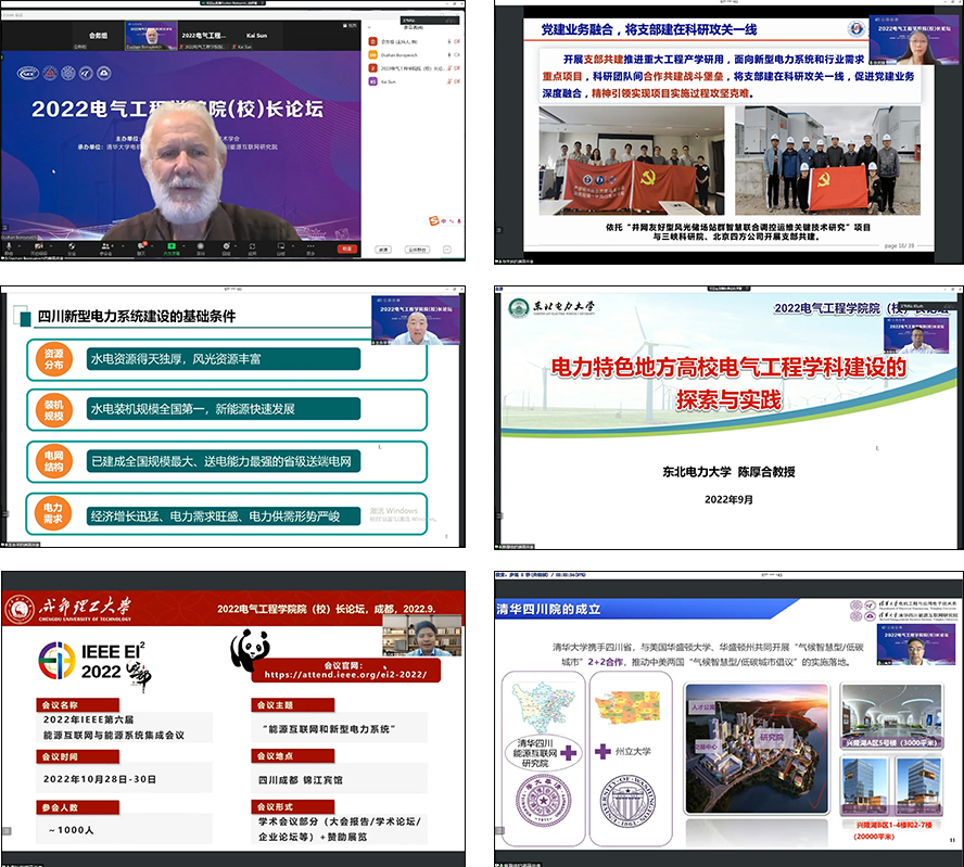 随后的主旨报告环节,美国弗吉尼亚理工学院副校长、美国工程院院士杜山·博洛耶维奇(Dushan Boroyevich)介绍了弗吉尼亚理工学院在电力电子领域的研究生教育培养工作基本情况与经验启示。华北电力大学党委常委、副校长毕天姝结合华北电力大学的典型案例与实践,分享了有组织科研攻关模式探索经验。四川省新型电力系统研究院院长王永平围绕建设思路、理论模型、探索实践等方面探讨了“多源互济”的四川新型电力系统建设思考。东北电力大学副校长陈厚合从东北电力大学电气工程学科建设举措入手,介绍了电力特色地方高校如何开展电气工程学科建设。成都理工大学党委常委、副校长黄琦交流了新兴信息支撑技术及其在新型电力系统中的应用相关研究成果。乐动平台电机系主任、清华四川能源互联网研究院院长康重庆以清华四川能源互联网研究院为例,介绍了乐动平台建设异地新型研发机构,支撑电气工程学科发展的经验探索。