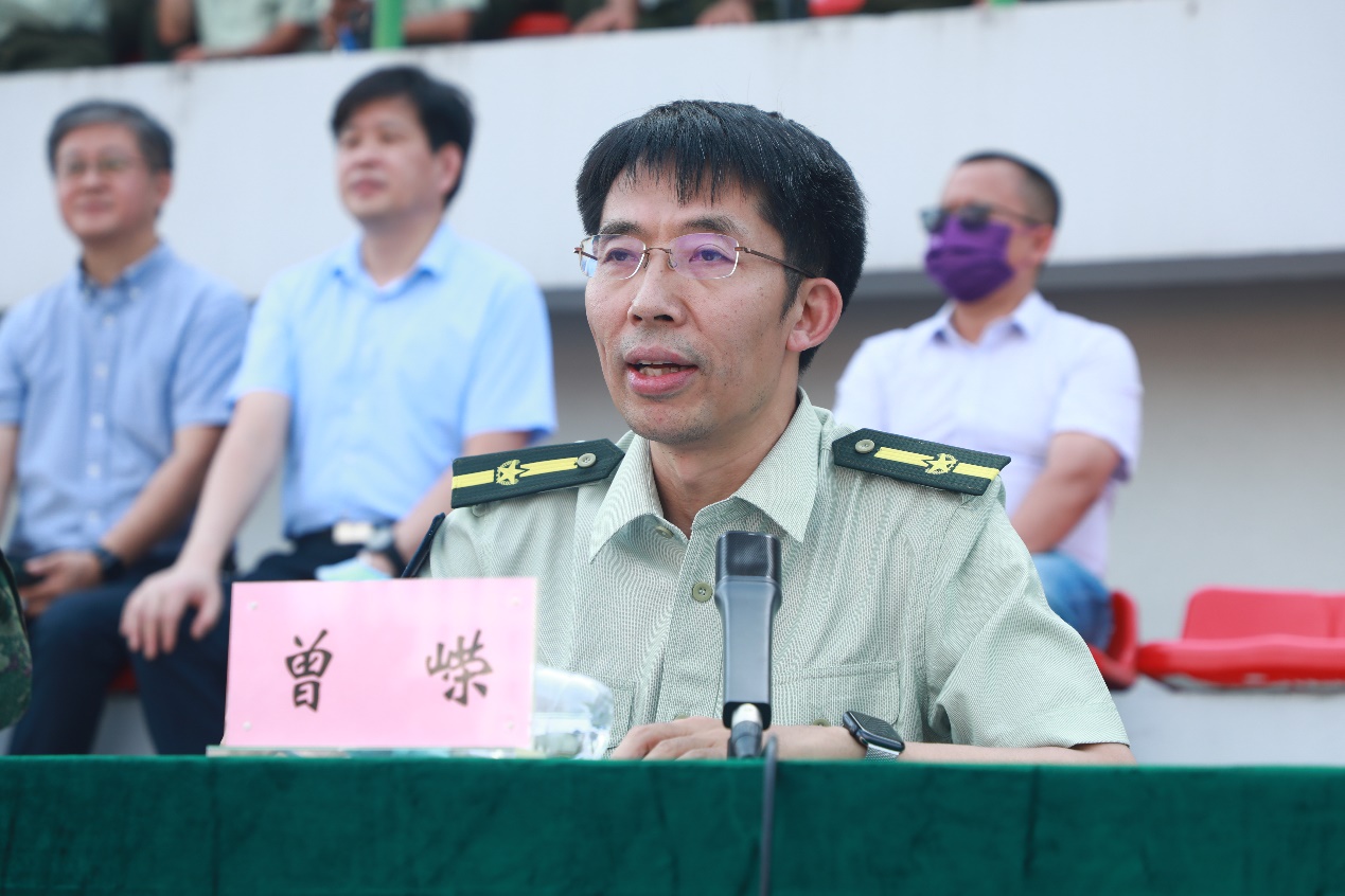 曾嵘在讲话中向圆满完成军训各科目训练的2022级同学表示祝贺,向辛勤付出的教官、教师、辅导员以及长期以来对清华学生军训工作给予大力支持的各单位表示感谢。曾嵘指出,2022年是新冠疫情发生以来第一次在入学教育阶段开展军训,美好的大学生活已经开始,希望同学们要坚定理想信念,不断强化时代使命感和家国情怀,把自己的理想同追求国家民族的前途命运紧密结合,发扬“爱国奉献、追求卓越”的清华传统。要积极参与集体建设,坚持顽强拼搏的意志品质,牢记“自强不息、厚德载物”的校训,继续践行军训过程中练就的钢铁意志和优良作风,用行动书写新时代的青春华章。