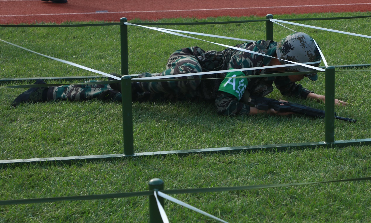 在军训成果汇报表演环节,一营军体拳虎虎生威,二营刺杀操气势如虹,三营旗语操整齐利落,四营匕首操锐不可当。带防毒面罩、整理背包、投掷手雷、匍匐前行……在军事技能大比武决赛上,同学们龙争虎斗、各显神通,男儿的铿锵斗志和女兵的巾帼风采,赢得了现场阵阵热烈的掌声,现场气氛热火朝天。