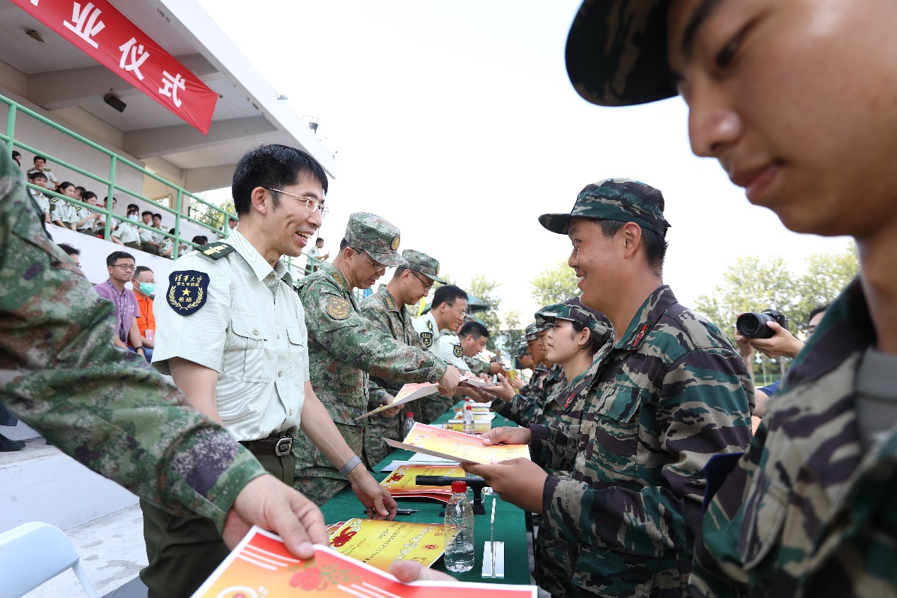 在144名承训教官、140多名带队教师和辅导员的精心组织、科学施训下,2022级本科生军训圆满完成。在雄壮嘹亮的《中国人民解放军军歌》声中,结业仪式落下帷幕。