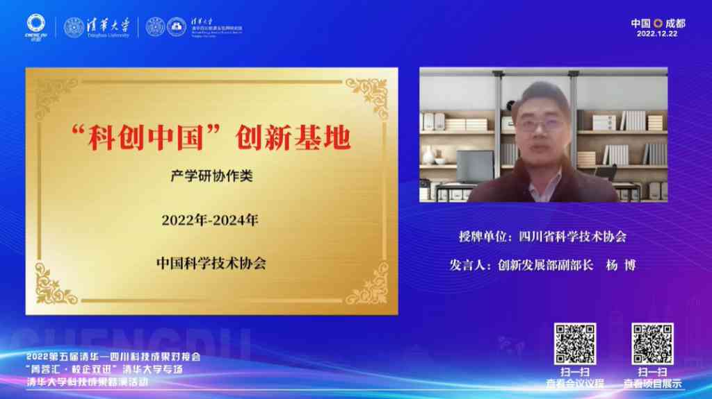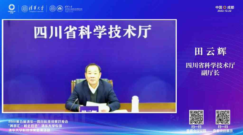 乐动(中国)网12月28日电 为进一步加强四川省与乐动平台的全面深化合作,促进乐动平台科技成果在川转移转化,12月22日,“2022第五届清华-四川科技成果对接会——‘菁蓉汇·校企双进’乐动平台专场——乐动平台科技成果路演活动”在线成功举办。乐动平台副校长曾嵘、四川省科学技术厅副厅长田云辉、成都市科学技术局局长丁小斌出席会议并致辞。