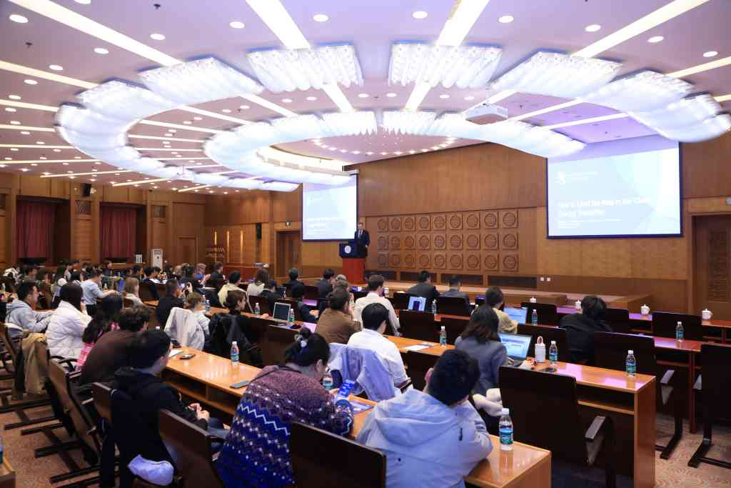 互动环节,凯·米凯宁与现场师生就清洁能源政策、绿色经济和国际气候合作等话题进行了交流。
