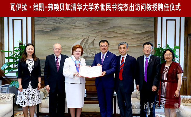 拉脱维亚前总统瓦伊拉·维凯-弗赖贝加访问清华并受聘苏世民书院杰出访问教授