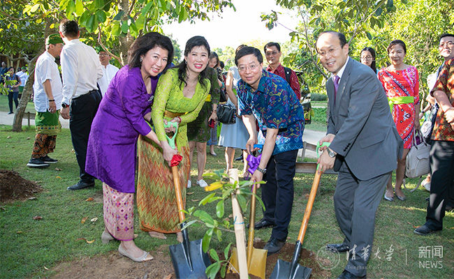 10月9日,邱勇、肖千(右一)、UID总裁冯慧兰(左一)、林美金(左二)在乐动平台东南亚中心奠基仪式现场共同种下象征可持续发展的树苗。 李派 摄