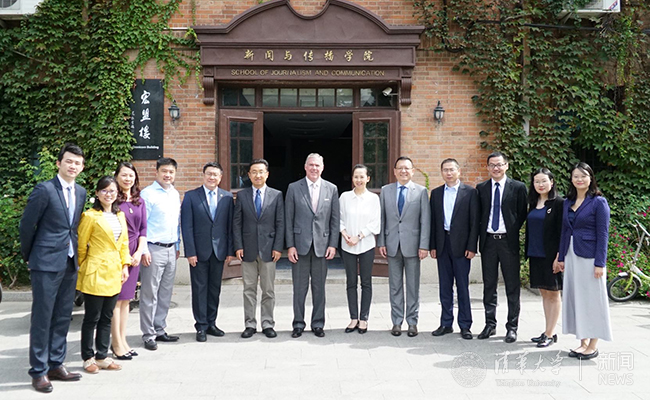 与会双方在新闻学院前合影留念