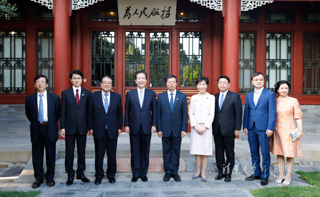 邱勇与山口那津男一行漫步清华园 李派 摄
