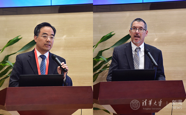 清华能源互联网研究院院长曾嵘(左)与华盛顿大学清洁能源研究院院长丹尼尔·施瓦茨签署“合作备忘录”。