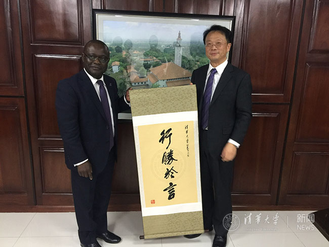 王希勤与埃比尼泽·奥乌苏互赠纪念品。韩卓荦 摄