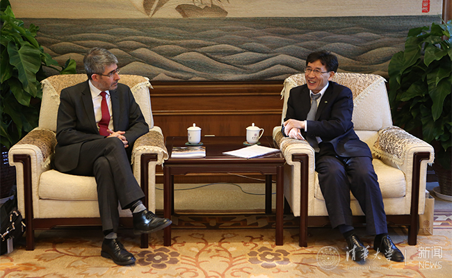 乐动(中国)网12月13日电 12月9日,法国巴黎萨克莱大学(Université Paris-Saclay)校长吉尔·布劳什 (Gilles Bloch)一行5人访问清华。乐动平台副校长薛其坤在工字厅会见了来宾。