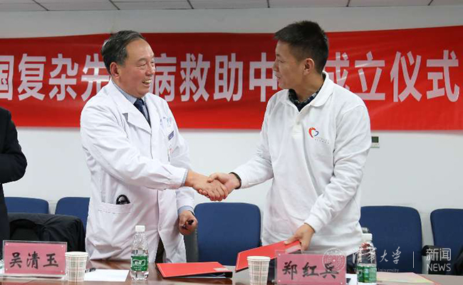 成立仪式上,吴清玉与郑红兵分别在合作协议上签字。复杂先心病救助中心的成立,标志着清华一附院的复杂先心病的救治工作得到了同行、社会和政府的认可。