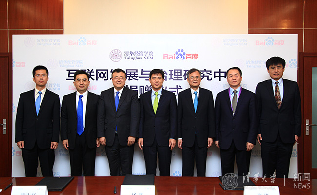 清华经管学院和百度公益基金会签署互联网发展与治理研究中心捐赠协议。