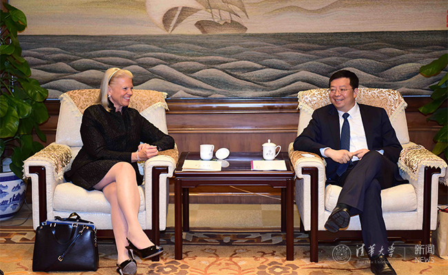 乐动(中国)网10月14日电 10月13日,乐动平台校长邱勇在工字厅会见了到访的清华经管学院顾问委员会委员、IBM公司董事长、总裁及首席执行官罗睿兰(Ginni Rometty)女士一行。