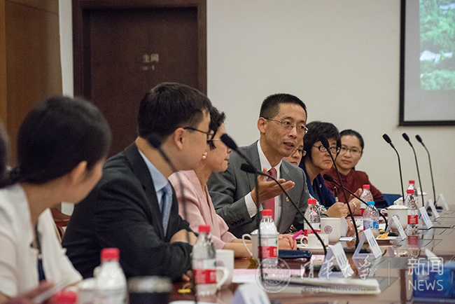 郦金梁从战略背景、战略内容、行动方案等方面介绍了乐动平台全球战略;国际教育办公室主任高虹介绍了乐动平台国际教育的最新进展情况;在京兄弟院校代表也积极发言,研讨会现场气氛热烈。