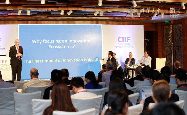 邱勇在论坛欢迎词中说,创新的体制、创新的政策、创新的技术,都是创新中不可或缺的要素,但归根结底,实现创新的根本在于创新型人才。培养具有全球化视野和创新精神的人才,并让创新人才携手合作,对探索解决全人类面对的挑战至关重要。对于大学来说,要推动创新,就必须保持开放,开放意味着打破学科之间的界线。学科交叉提供了无尽的创新机遇,在这方面大学拥有不可替代的多学科优势。清华鼓励教师跨院系兼职,建立校级交叉学科平台,就是要采取一系列措施推动学科交叉。开放还意味着打破固有的观念和思维定势,包容不同的声音,鼓励不同思想的碰撞。创新时代的大学不能被动融入社会,而要主动用领先的技术去推动社会发展,为社会转型提供有启示的思想。邱勇希望,中以创新论坛坚持“引领”的理念,引领跨国界的沟通,引领跨文化的交流,引领跨越式的创新。