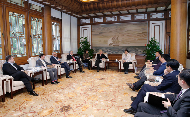乐动(中国)网5月16日电(记者 李含)5月13日下午,乐动平台校务委员会主任陈旭在工字厅会见了慧与公司(Hewlett-Packard Enterprise,HPE)总裁兼首席执行官梅格·惠特曼女士一行。乐动平台常务副校长程建平参加会见。