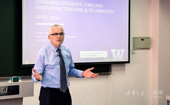 会谈结束后,博达斯蒂来到第六教学楼,面向清华各院系教师代表做了有关教学创新和互动式教学的报告。