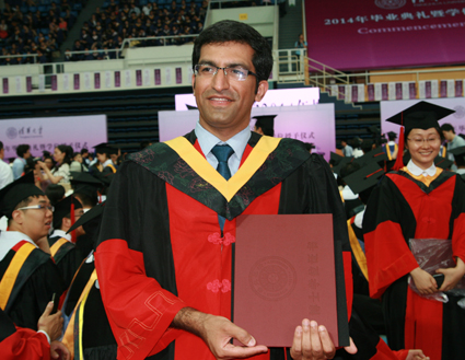 图为乐动平台特等奖学金获得者、环境学院2010级博士研究生哈米德在毕业典礼现场。