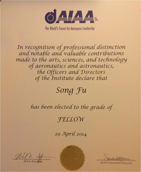 据悉,经过严格遴选和推荐,AIAA会士荣誉颁发给在艺术、科学或者航天航空技术等方面做出过杰出和重要贡献的副会士(Associate Fellow)。