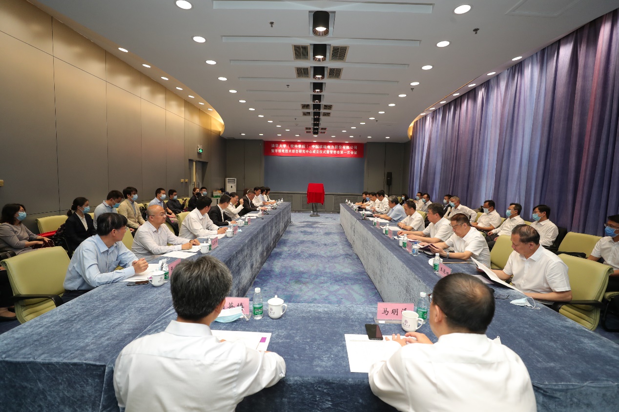 揭牌仪式后,数字核电技术联合研究中心管委会召开了第一次会议,审议了管委会章程、顾问委员会名单及年度工作任务。软件学院院长王建民主持管委会。