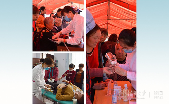 在临时搭建起来的红棚里,义诊队刚刚抵达,就被常乐镇的老乡们团团围住。护理人员用自备的血压仪、血糖试纸、心电图机为老乡们进行基础检查,医师们开展基础性查体和健康咨询,为老乡们讲解基础用药、合理膳食、护理常识,分发宣教材料,针对个别的重症患者,给予综合治疗建议。